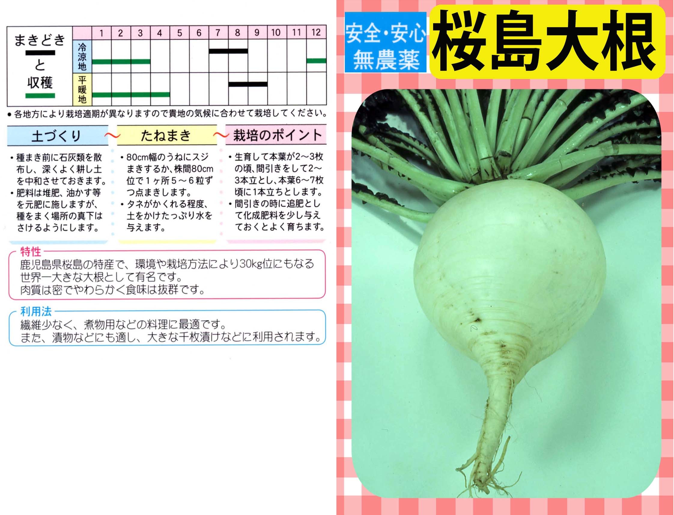 桜島大根は、世界最大、最重量の大根で有名です。来歴は諸説ありはっきりしていません。19世紀の初めから知られていましたが、そのころは形状が違い、現在のような形になったのは明治以降とされています。桜島の火山灰土壌で育てると大きく育つと言われています。肉質は柔らかく、甘味もあるので生食にも煮食にも向いています。