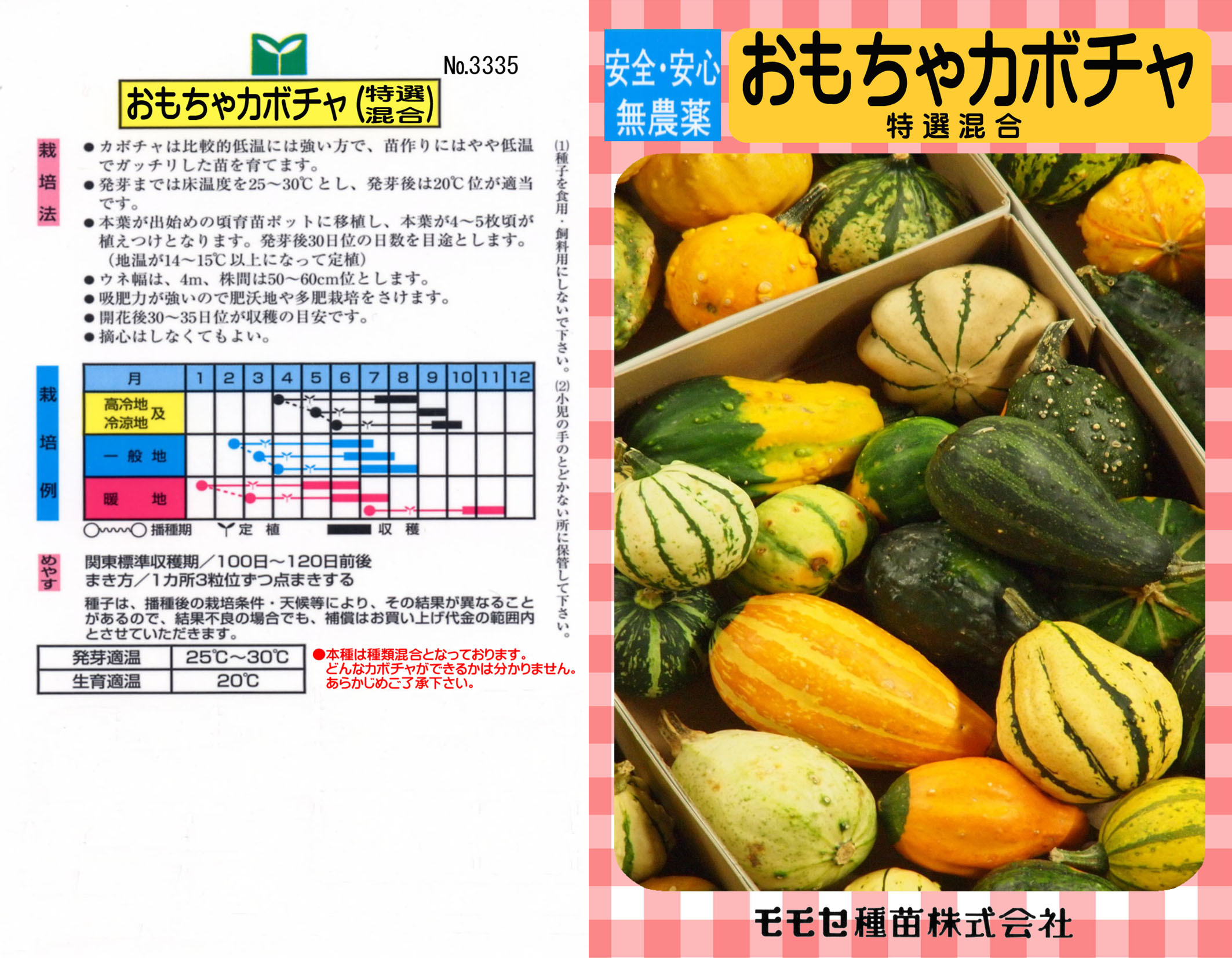 本種は多くの種類のあるおもちゃカボチャの混合種となりますので、収穫してみないと何ができるか分かりませんので、あらかじめご了承の上お買い上げください。