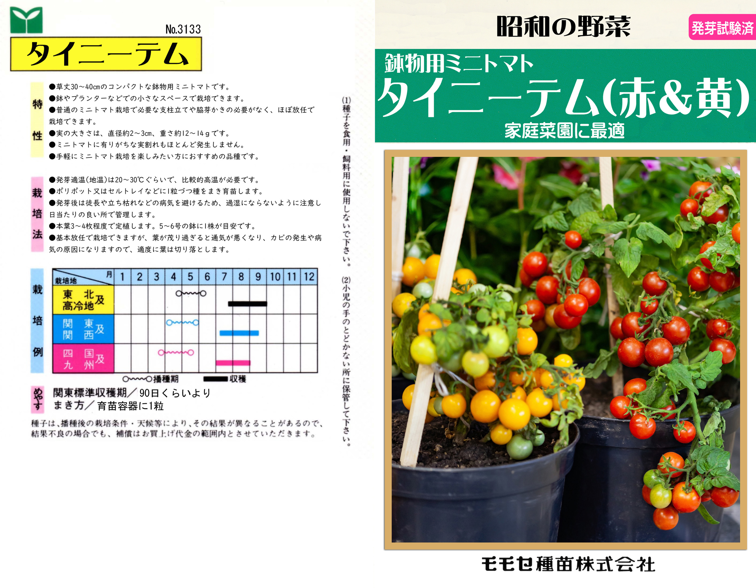 本種は、昭和の初期の頃に日本に導入されたと言われるミニトマトの固定種で、交配種が当たり前のトマトの世界において貴重な品種のひとつです。最大の特徴は草丈があまり大きくならず、鉢栽培でも十分に楽しめることです。スペースがなくトマト栽培を諦めていた人にオススメです。