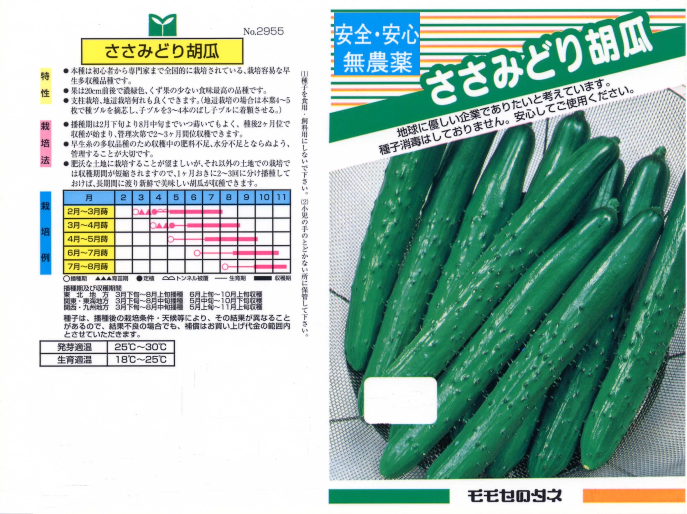 本種は多収性と作りやすさを兼ね備えた交配種です。支柱を立てる栽培および地這い栽培もできるので家庭菜園に最適です。枝の発生が多くよく伸び、各節に着果しやすい性質です。初夏から秋まで切れ目なく収穫を楽しむことができます。