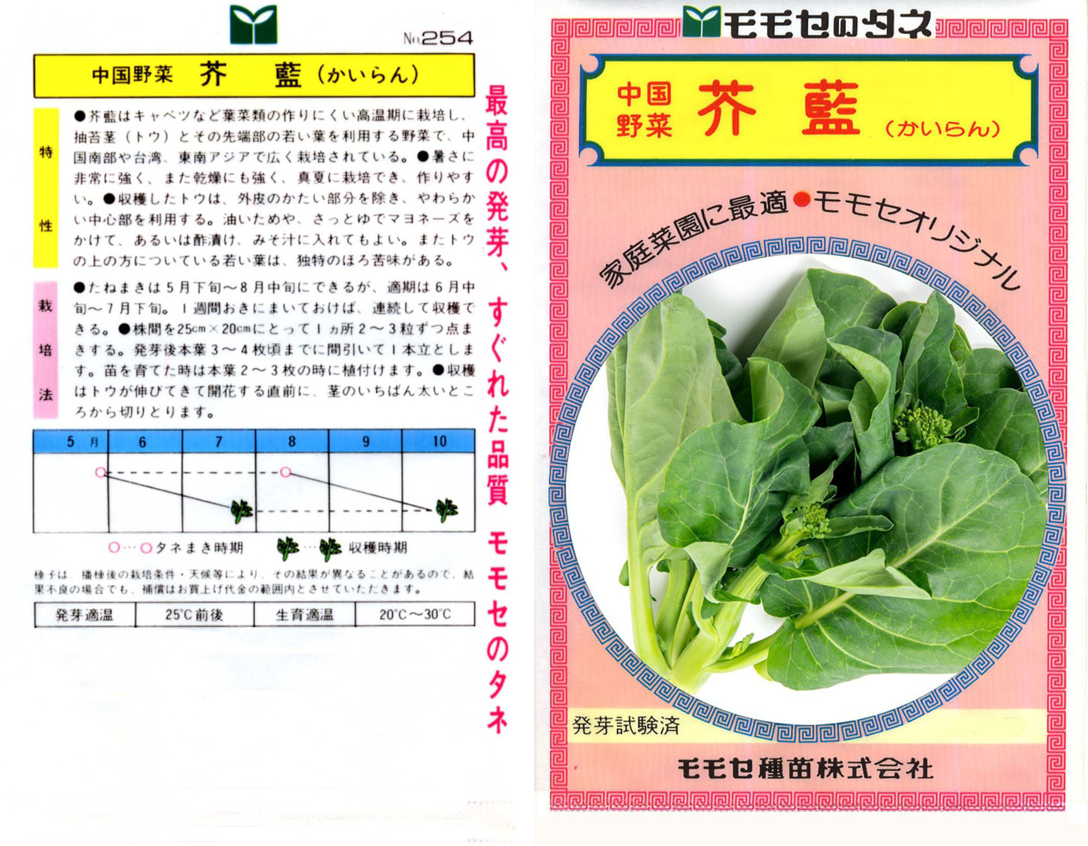 中国野菜 写真をクリックすると拡大します 【商品№】 3604【内容量】 3㎖【税込価格】¥330 芥藍(かいらん) 別名チャイニーズケール キャベツとブロッコリーを足したような結球しないキャベツの一種で、中国広東地方が原産だと言われています。ブロッコリーが変異してできたのではないかと考えられています。花茎と若い葉を食用としますが、アスパラガスとブロッコリーを足して割ったような食感で、ほんのりした甘みと苦みがあります。主に温サラダや炒め物などでいただきます。 【栽培のポイント】 栽培が高温期なので、青虫などの害虫防除は忘れずに行いましょう。 国産無農薬種子 国産無農薬種子(草花) 無農薬種子(葉物野菜) 無農薬種子(根物野菜) 無農薬種子(実物野菜) 楽しい野菜・珍しい野菜 郷土の野菜・伝統野菜 中国野菜 ハーブ 緑のカーテン スプラウト種子 ベビーリーフ種子 昭和の野菜