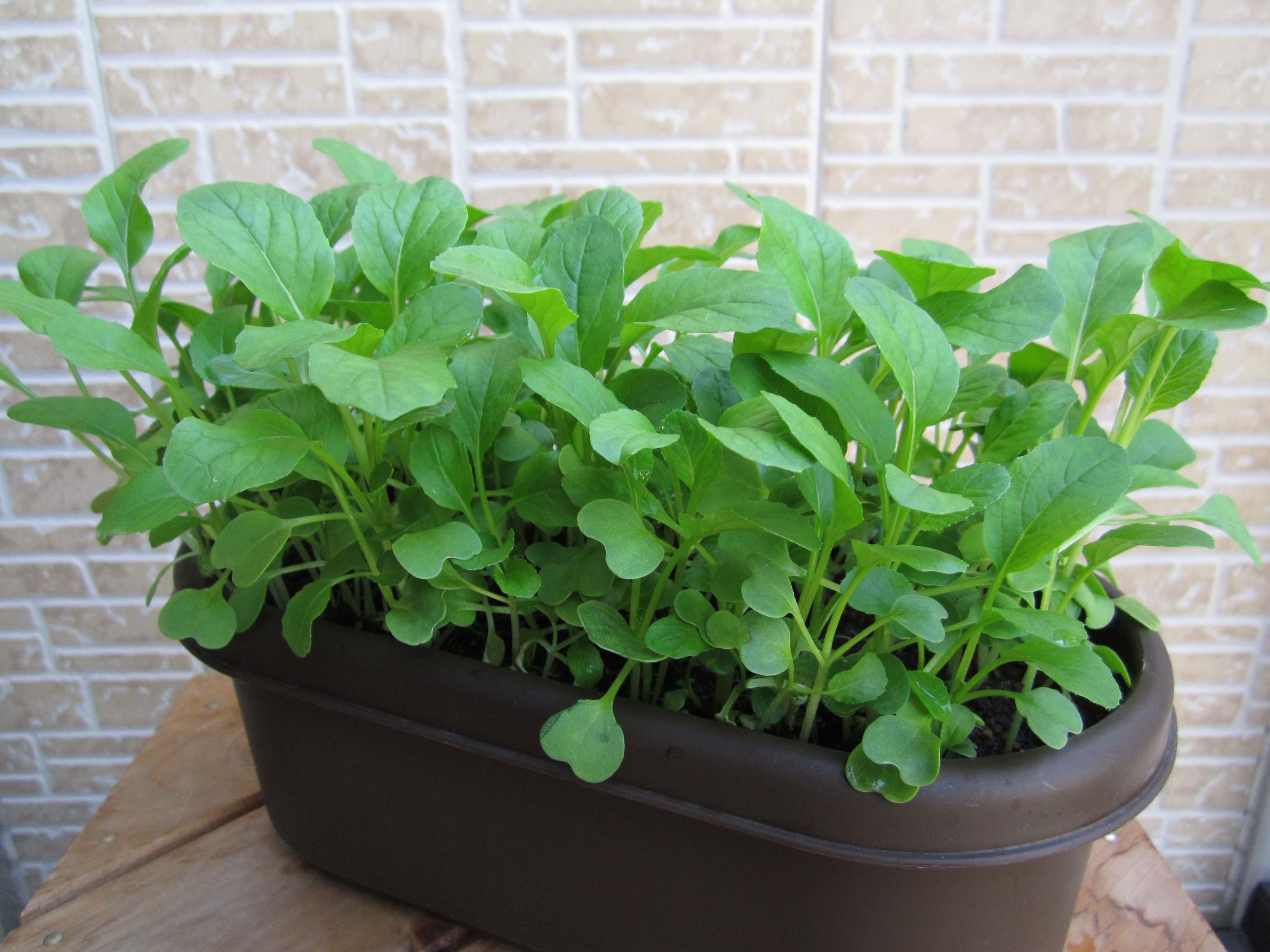青菜のベビーリーフで、クセが少なく小さいながらもビタミン、ミネラルを含む緑黄色野菜です。サラダや汁の実に利用します。