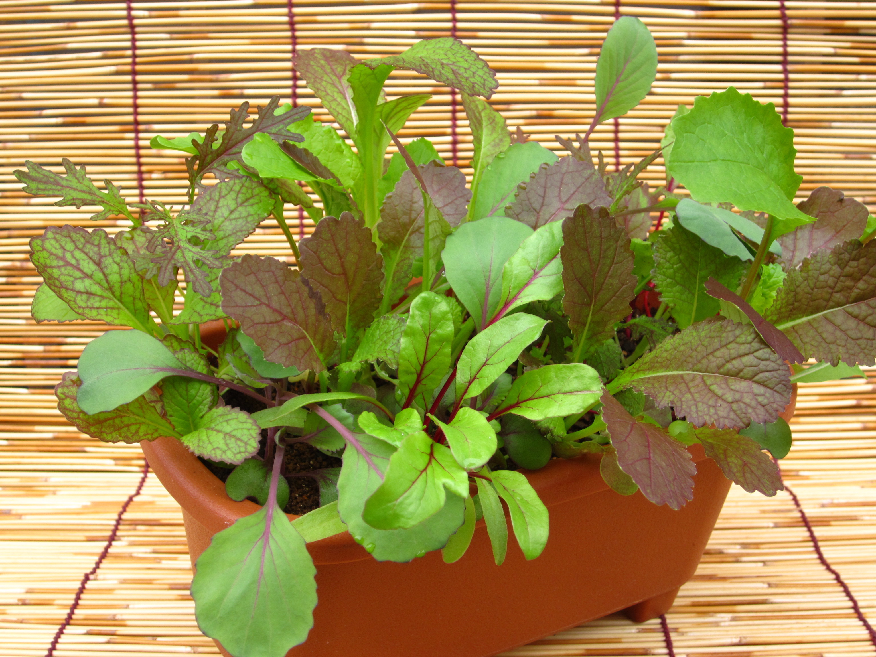 赤いアクセントがどこかに入る葉を持つベビーリーフを混合しました。歯ごたえのある葉、辛みのある葉、姿に個性のある葉とバラエティに富んでいます。サラダや汁の実などで利用します。