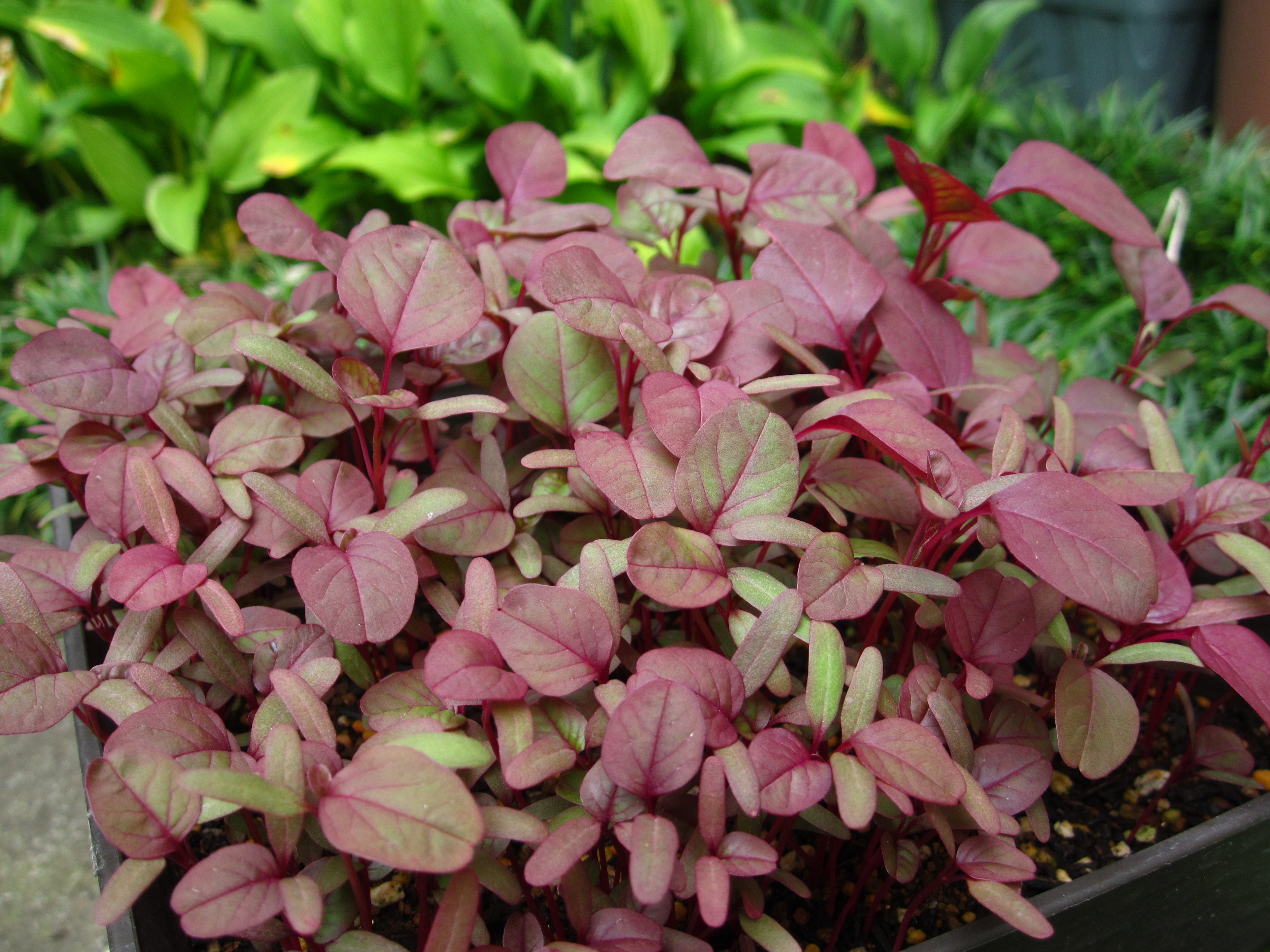 アマランサスは別名ヒユナやジャワホーレンソウとも呼ばれている、花を楽しむケイトウの仲間です。本種は葉が赤い食用アマランサスで小さいうちから良く色付きます。クセがなく、サラダや炒め物などで楽しみます。