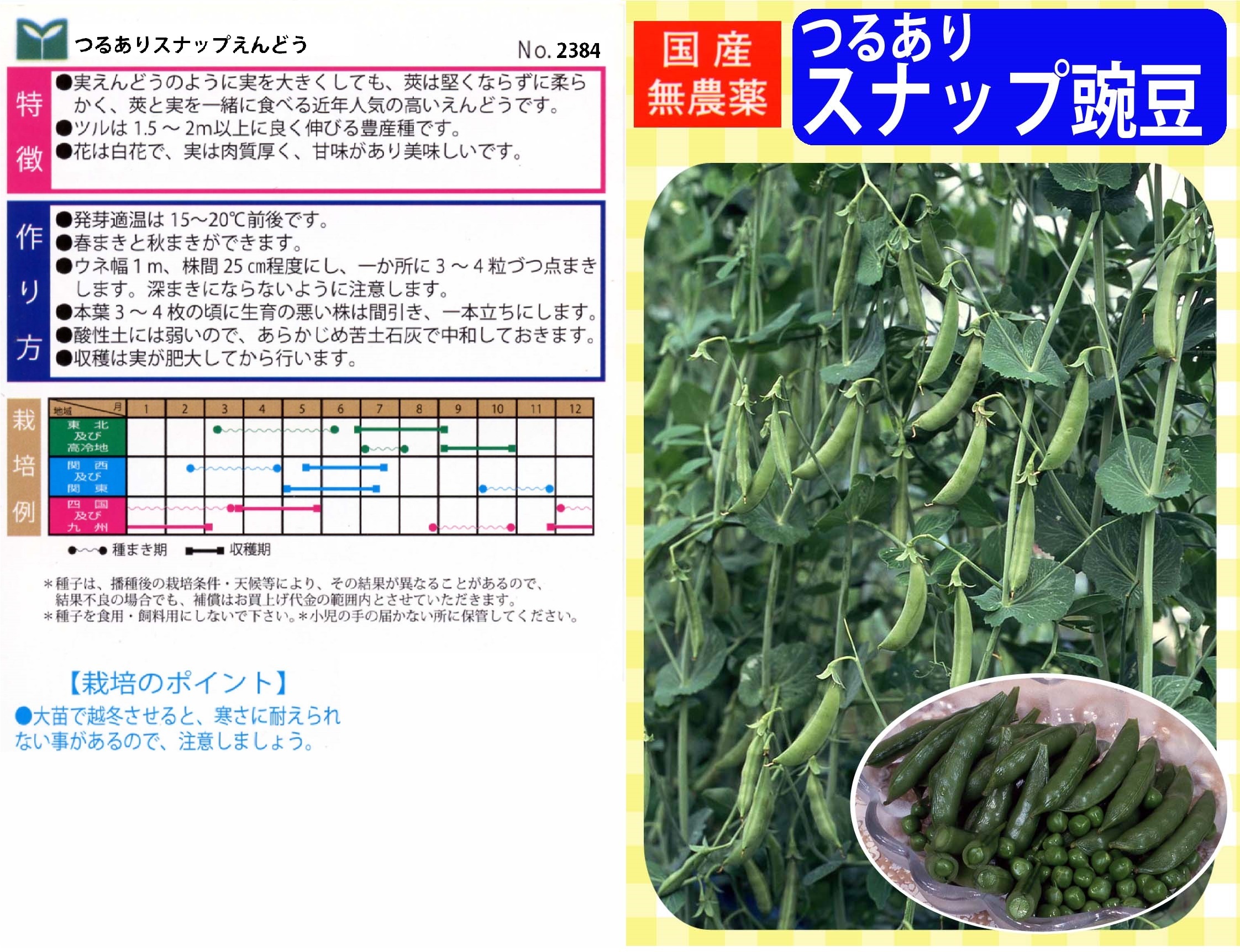 本種は、そんなスナップ豌豆の国内生産種子で、国産にこだわりのある方におすすめです。