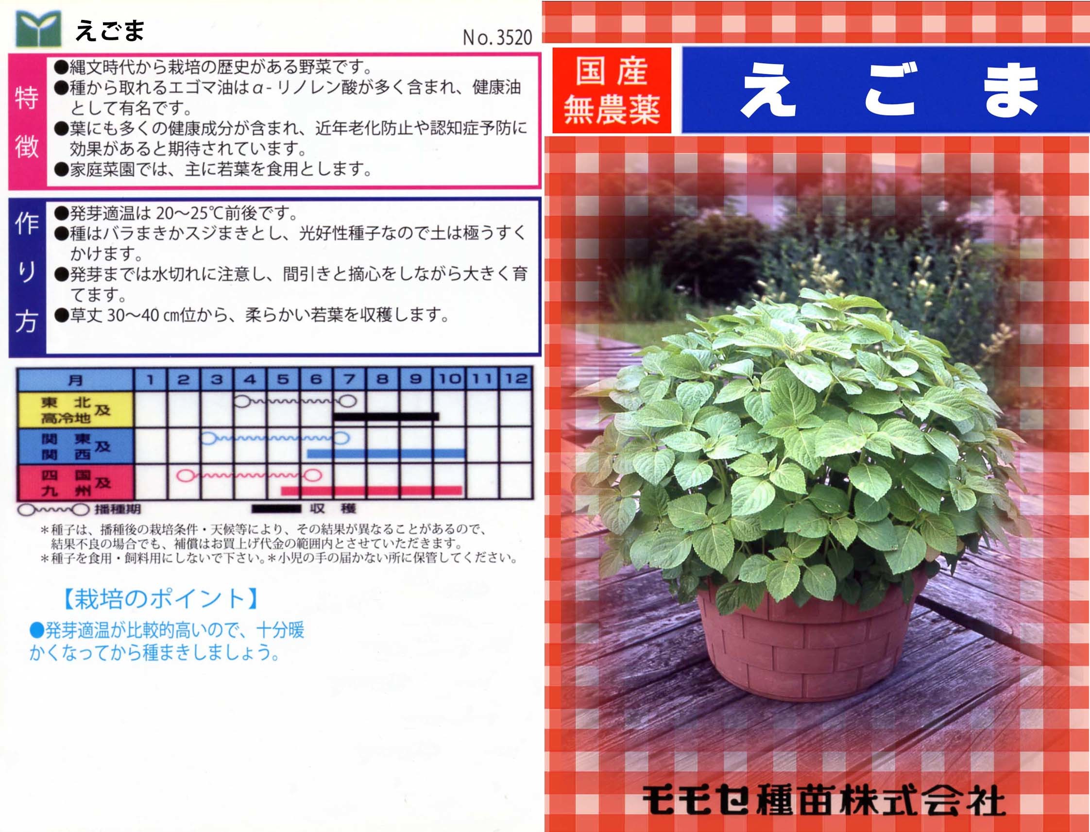 えごまはしその仲間で見た目もしその葉によく似ています。韓国料理によく利用されるイメージがありますが、日本でも縄文時代には存在し、奈良時代ごろには全国で栽培されていたようです。えごまの葉にはしそとは違う独特の香りがあり、その好みは人により分かれるところですが、栄養的には高く、βカロテンやビタミン類を多く含んでいます。これらの作用により免疫力の向上や老化防止の効果が期待されています。種からはα-リノレン酸を含む「えごま油」が取れますが、家庭菜園では葉を利用します。