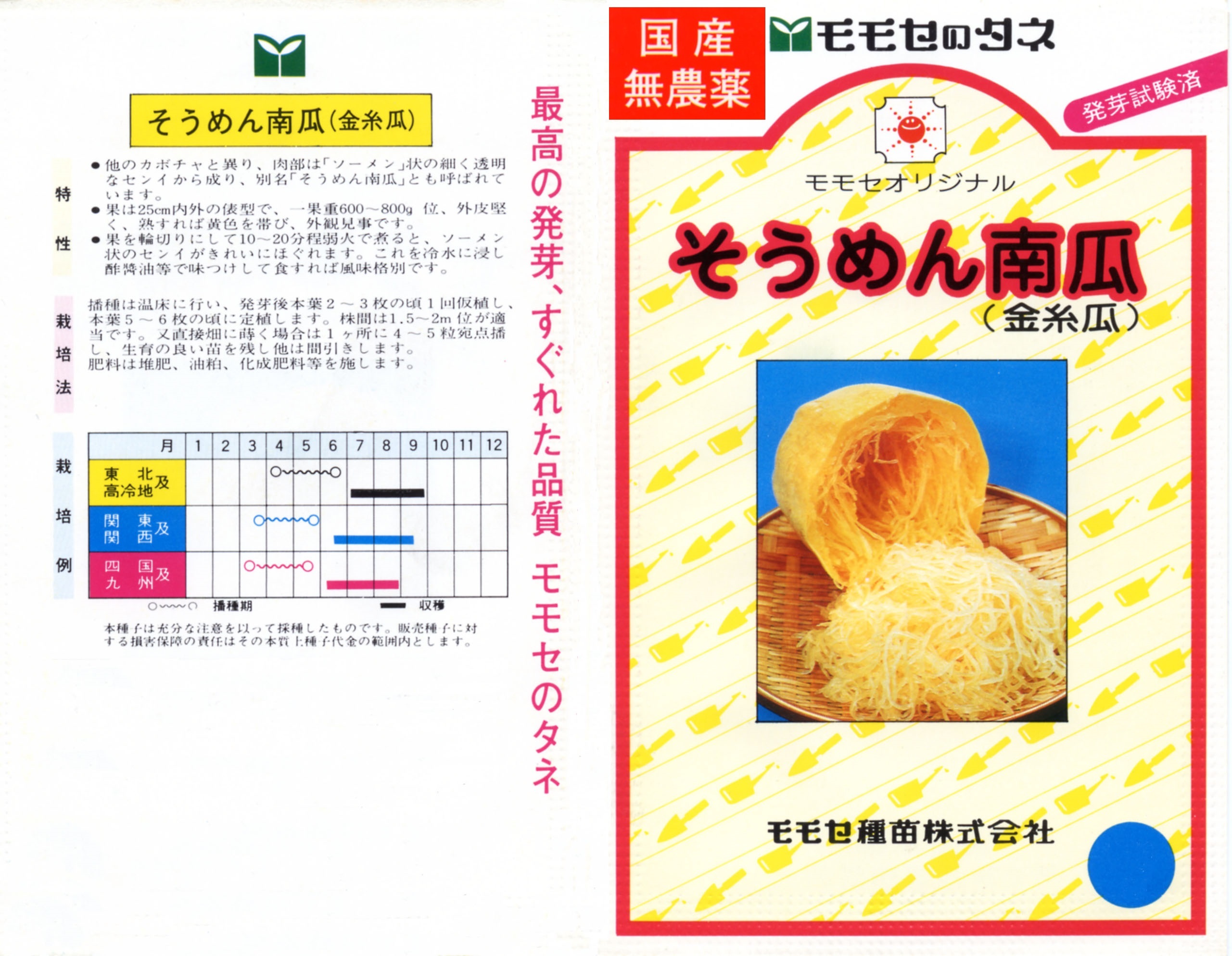国産無農薬種子 写真をクリックすると拡大します 【商品№】 3303【内容量】 5㎖【税込価格】¥330 そうめん南瓜 茹でたら変身!ユニークな南瓜 別名を(金糸瓜)と言い、輪切りにして茹でると中身がまるで細長い麺のようにパラパラとほどけます。昔は三杯酢で食べるのが一般的でしたが、最近は低カロリーを生かしてパスタソースに絡めたり、夏の冷やし中華の麺にしたりと、ダイエット食材として注目されています。 【栽培のポイント】 発芽適温が高いので十分に暖かくなってから種をまき、苗を作ってから畑に植えましょう。 国産無農薬種子 国産無農薬種子(草花) 無農薬種子(葉物野菜) 無農薬種子(根物野菜) 無農薬種子(実物野菜) 楽しい野菜・珍しい野菜 郷土の野菜・伝統野菜 中国野菜 ハーブ 緑のカーテン スプラウト種子 ベビーリーフ種子 昭和の野菜