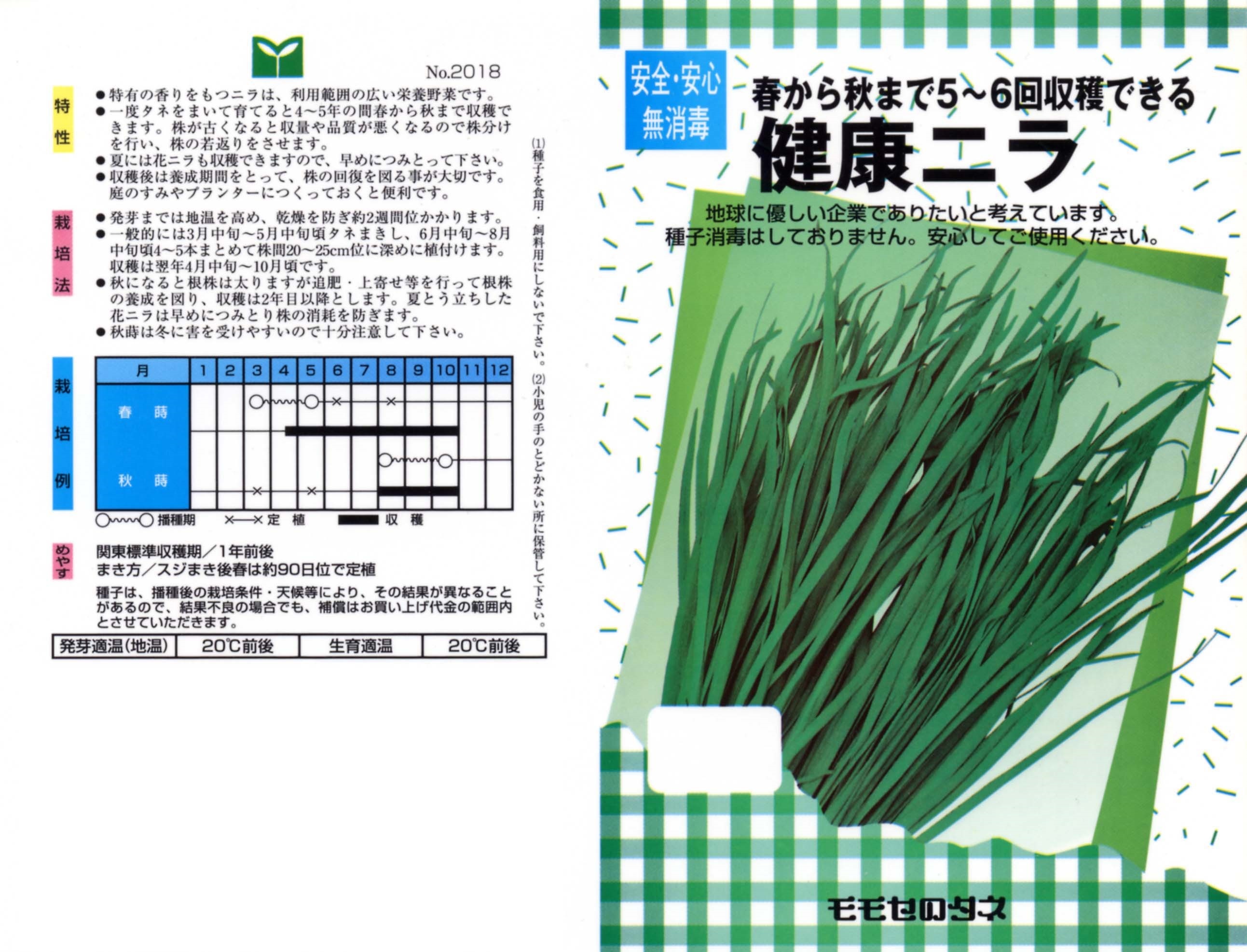 東アジア原産の野菜で、古事記には「加美良(かみら)」の名前で登場し、古くから薬草として利用されてきました。しかし、広く野菜として消費されるようになったのは戦後のことで、比較的新しい野菜と言えます。栃木県鹿沼市では蕎麦と一緒に食べる「ニラ蕎麦」が有名です。根株で冬を越す宿根草で、一度種まきすれば長く収穫を楽しむことができます。特有の強い香りは硫化アリルでニンニクにも含まれ、ビタミンB₁吸収を高め、疲労回復、食欲不振に効果があるとされています。