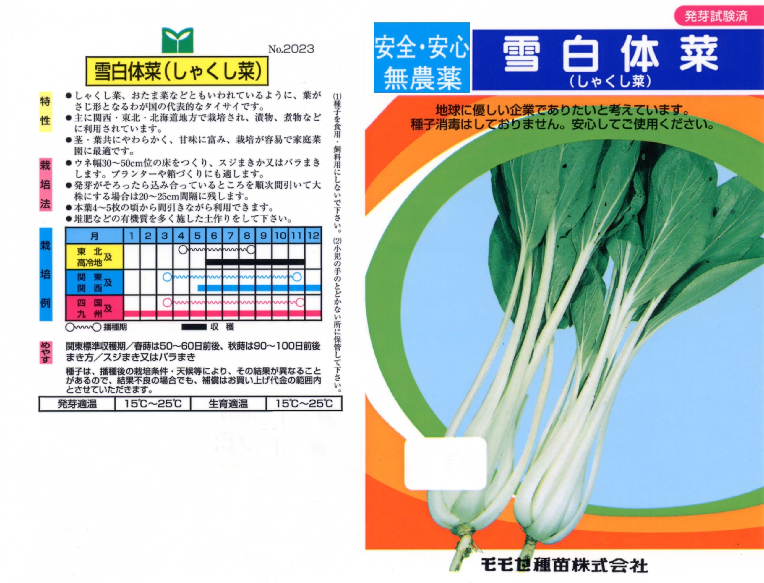 明治時代に中国より伝わってきた漬菜で、茎は純白で長く上部が細くなっていて杓子に似ている所から「しゃくし菜」とも呼ばれています。暑さ寒さに強く、気候や土質もあまり選ばずに育つので、家庭菜園で作りやすい野菜の一つです。小さいうちから利用できますが大きくなると50cm前後に成長します。漬物やお浸し、汁も実はもちろん、炒め物にも向きます。