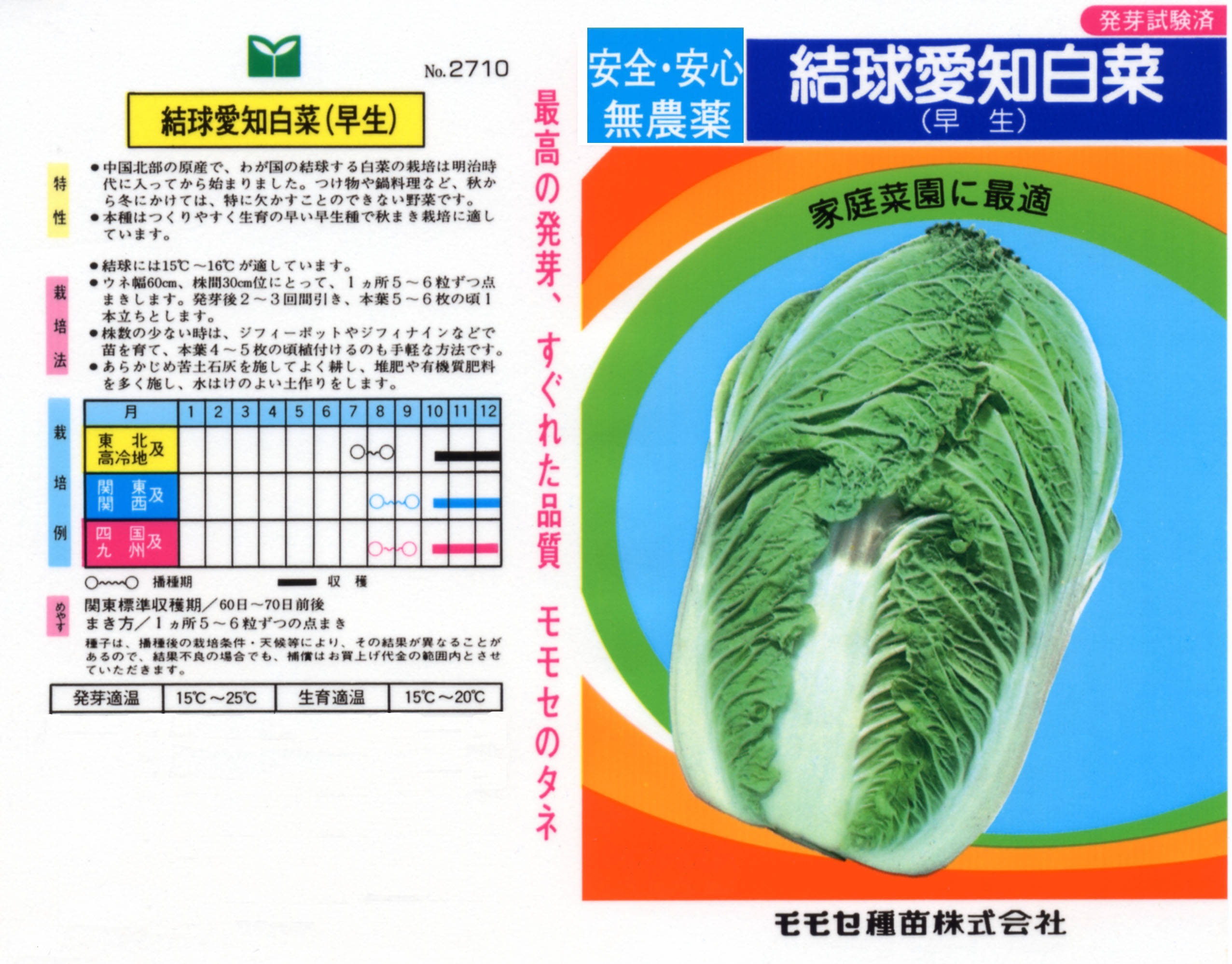 無農薬種子(葉物野菜) 写真をクリックすると拡大します 【商品№】 2710【内容量】 5㎖【税込価格】¥330 愛知白菜 結球早い早生種 もともとは山東系白菜が愛知県下で土着したものだと言われています。長めの円筒形で頭の部分の葉も良く重なり合います。結球が早く、種まき後60日ぐらいから収穫できます。種まきできる期間が長く、秋採りから年末採りまで幅広く対応可能な品種です。葉質は繊維質が少なく柔らかで、食味は上々です。 【栽培のポイント】 早まきの場合は虫が付きやすいので、気を付けましょう。 国産無農薬種子 国産無農薬種子(草花) 無農薬種子(葉物野菜) 無農薬種子(根物野菜) 無農薬種子(実物野菜) 楽しい野菜・珍しい野菜 郷土の野菜・伝統野菜 中国野菜 ハーブ 緑のカーテン スプラウト種子 ベビーリーフ種子 昭和の野菜
