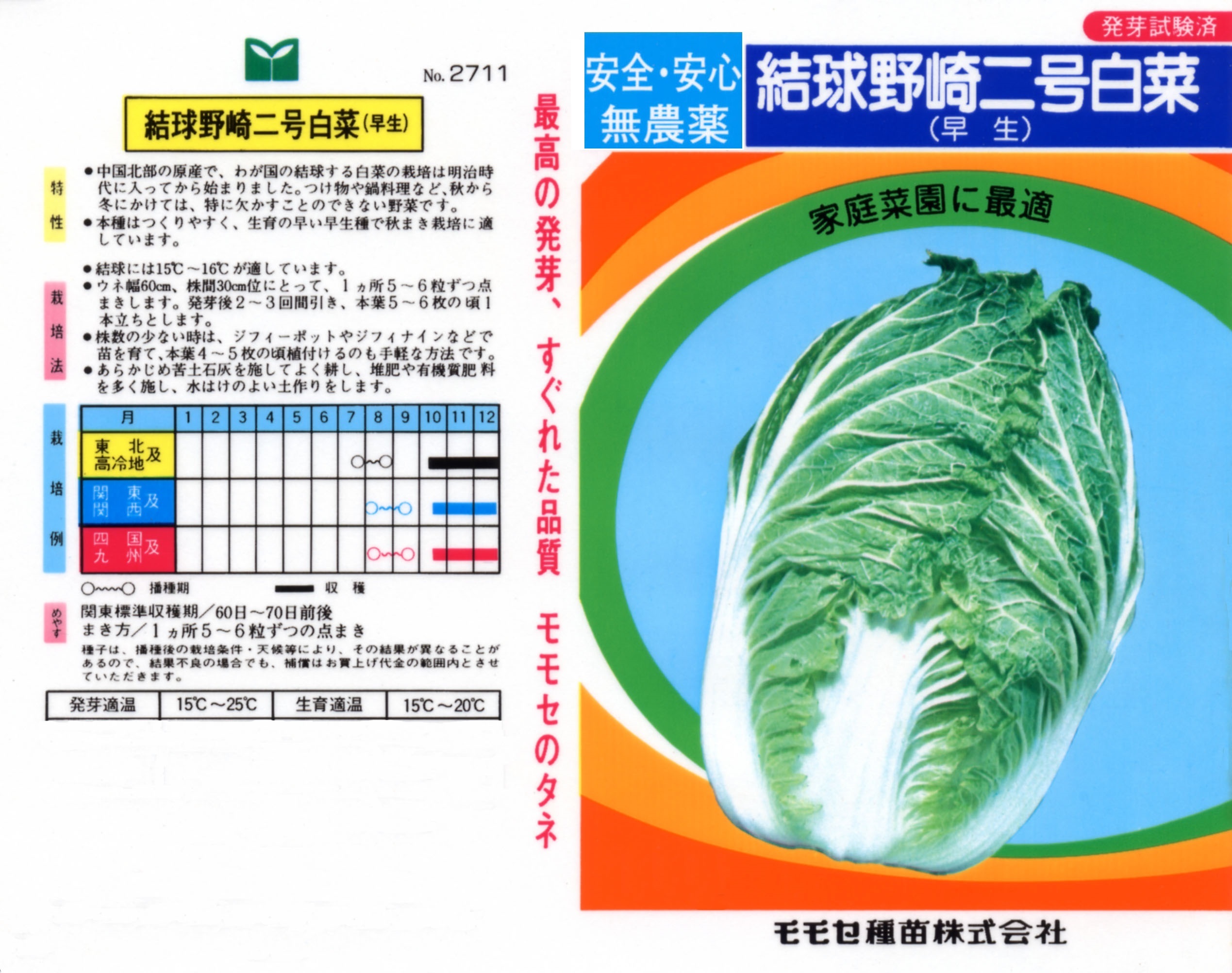 無農薬種子(葉物野菜) 写真をクリックすると拡大します 【商品№】 2711【内容量】 5㎖【税込価格】¥330 野崎二号白菜 愛知伝統野菜の一つ 大正時代に改良育成された品種で、愛知系白菜の一つです。尾張地域で広く栽培がされています。葉質が柔らかく甘味があり、浅漬けや鍋料理に最適な品種です。種まき後60~65日ぐらいで収穫できる早生種です。 【栽培のポイント】 無理な早まきはせず、適期まきを心がけましょう。成長が早いので、病害虫は早期に対処しましょう。 国産無農薬種子 国産無農薬種子(草花) 無農薬種子(葉物野菜) 無農薬種子(根物野菜) 無農薬種子(実物野菜) 楽しい野菜・珍しい野菜 郷土の野菜・伝統野菜 中国野菜 ハーブ 緑のカーテン スプラウト種子 ベビーリーフ種子 昭和の野菜