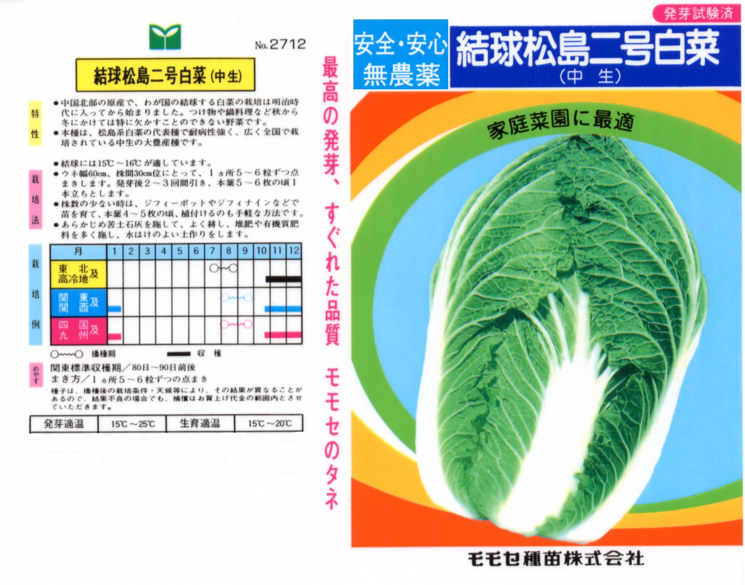 無農薬種子(葉物野菜) 写真をクリックすると拡大します 【商品№】 2712【内容量】 5㎖【税込価格】¥330 松島二号白菜 どこでも作れる強健種 チーフ系の白菜を宮城県において改良し誕生したとされる白菜です。中生種白菜の代表格で、種まき後80~90日くらいで収穫となります。品質が良好で病気に強く、貯蔵性や輸送性に優れ、しかも適応範囲が広かったため全国に普及しました。 【栽培のポイント】 生育途中の肥料切れに注意し、適期追肥を行いましょう。 国産無農薬種子 国産無農薬種子(草花) 無農薬種子(葉物野菜) 無農薬種子(根物野菜) 無農薬種子(実物野菜) 楽しい野菜・珍しい野菜 郷土の野菜・伝統野菜 中国野菜 ハーブ 緑のカーテン スプラウト種子 ベビーリーフ種子 昭和の野菜