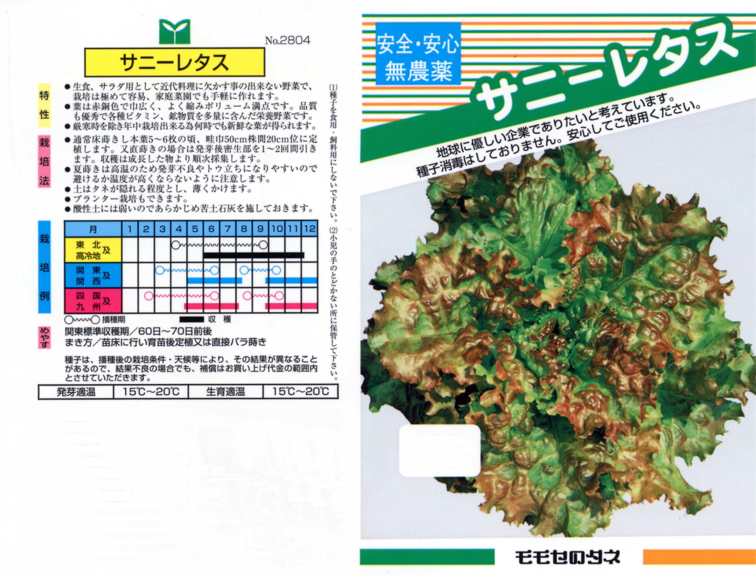 レタス類は大別するとクリスプヘッド型、バターヘッド型、コス型、リーフ型、ステム型に分類されます。サニーレタスは結球しないリーフ型の代表的品種で1980年代ごろから広がり始めた比較的新しい品種です。球レタスより栄養価は高く、栽培もやさしいです。家庭菜園では下葉から順次かき取り収穫すれば、長期間利用できます。