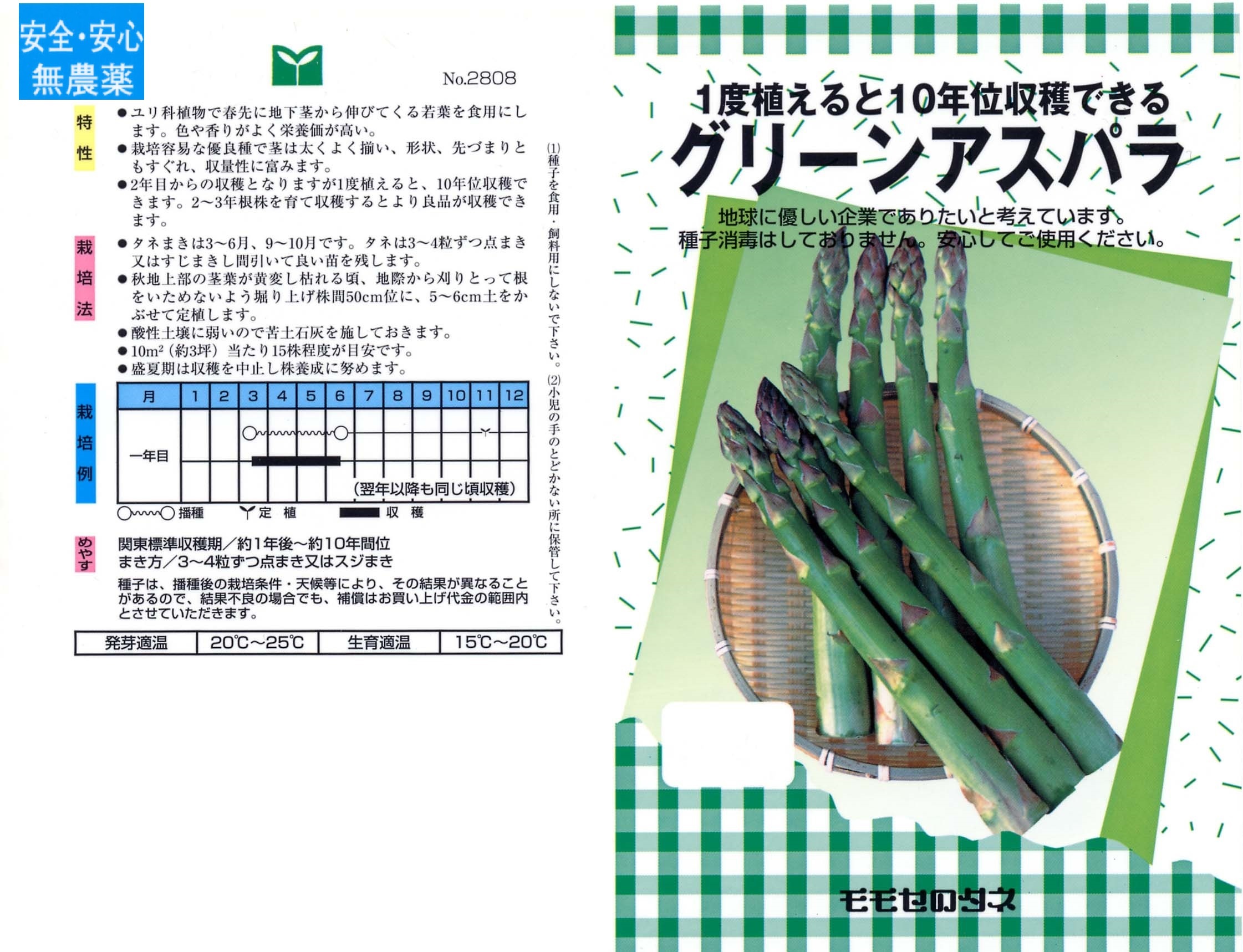 根が地中に残る宿根草の野菜で、春先に出てくる芽を食用としています。江戸時代には日本に伝わっていましたが、当時は観賞用で、食用として栽培が始まったのは大正時代と言われています。カロテンやビタミンなど多くの栄養成分を含みますが、特にアスパラガスから発見されたアスパラギン酸は疲労回復効果があるとされるアミノ酸の一種です。また、穂先にはルチンが含まれ、動脈硬化の予防に効果があると言われています。