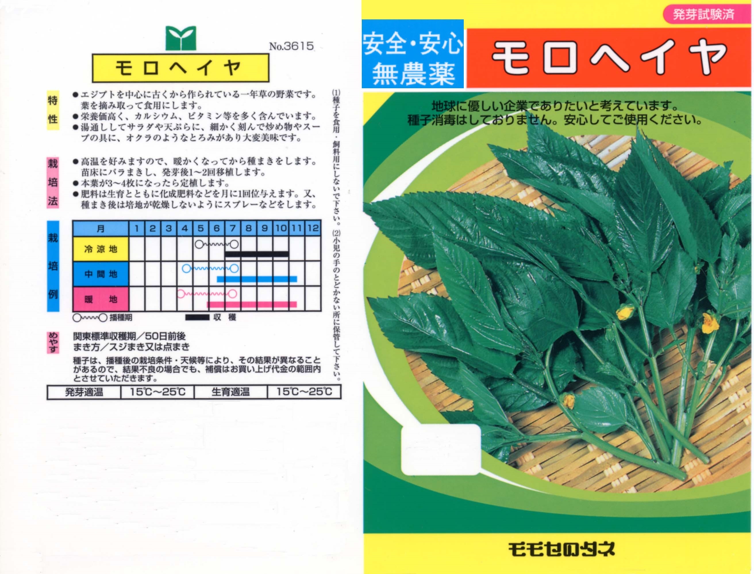 5000年以上も前から栽培の歴史のある中近東原産の健康野菜で、日本には1980年代になって入ってきた比較的新しい野菜です。葉を刻むとオクラやとろろのようなヌメリがあるのが特徴で、胃腸などの消化器官の粘膜の保護や血液中の糖の吸収を緩やかにする働きがあると言われています。もともと砂漠地でも育つ野菜なので、性質は極めて丈夫で、畑はもちろん、プランターや鉢などでも簡単に栽培できます。