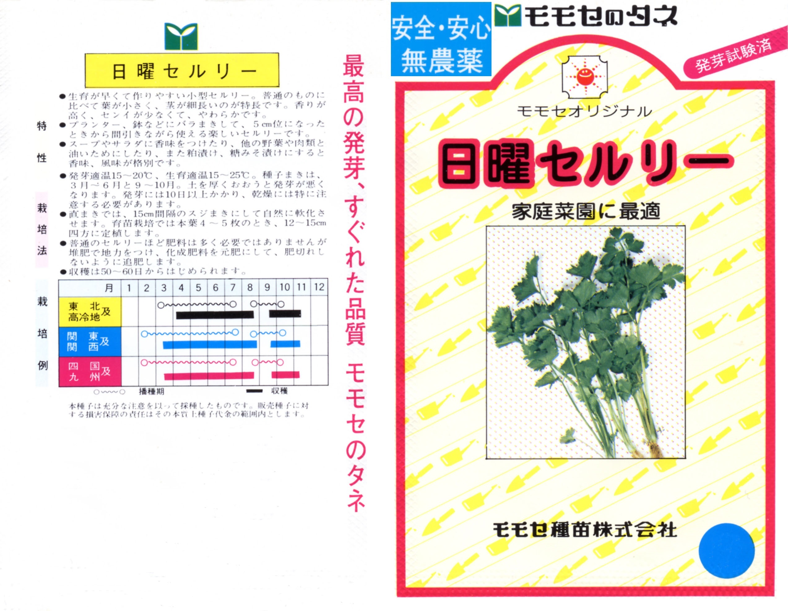 地中海沿岸からアジア西部が原産のセルリーの原種と言われています。良い香りを持ち、肉や魚のにおい消しやスープやサラダ、おひたし、炒め物、漬物などに利用できます。また、刻んで風呂に入れると湯冷めしないと言われています。葉や茎にビタミン類が多く含まれ、ガン予防や高血圧の予防、血糖値の改善に効果があると言われています。生育が早く暑さ、寒さにも強いので、栽培のしやすい野菜です。小さな鉢でも作れるので、家庭菜園向きのセルリーです。